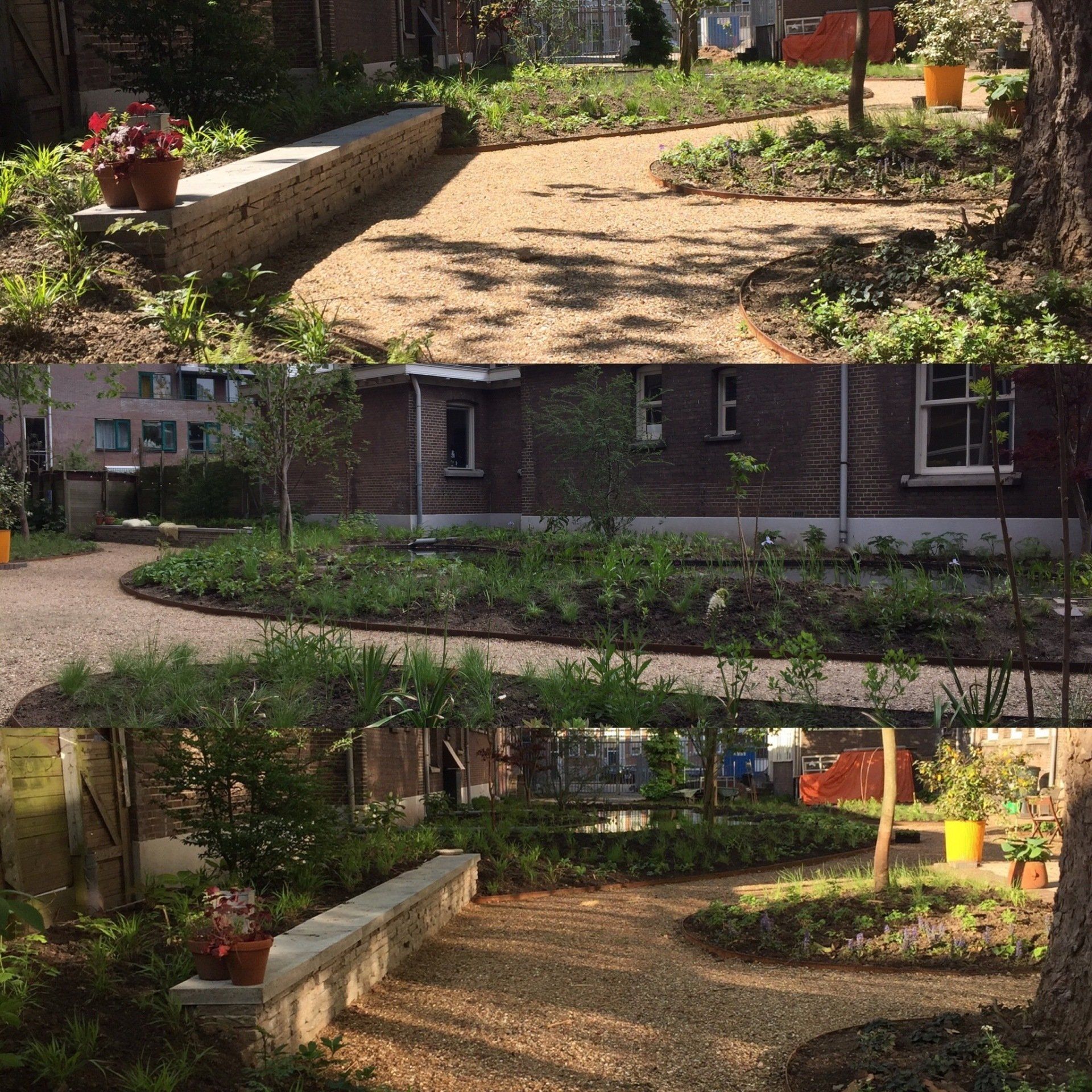De tuin is elk seizoen, elke maand, zelfs elke dag weer net een beetje anders. We begonnen met een betegeld schoolplein en gaan stapje-voor-stapje steeds verder. Hieronder een overzicht van foto's van de afgelopen drie jaar.